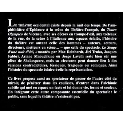 Une évocation du théâtre à la fois chronologique et thématique à travers l'histoire, le texte théâtral, la mise en scène et le rapport au spectateur, complétée par des annexes relatives au lieu théâtral, à la vie d'une troupe,...