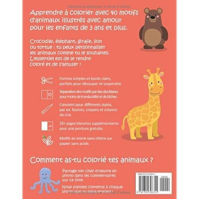 Mon 1er livre de coloriage enfant ANIMAUX ?? ? partir de 3 ans ?? Cahier coloriage pour garçons & filles, 40 beaux motifs animaux, gribouillage contre ... ?? Apprendre à colorier pour enfants de 3 ans Details